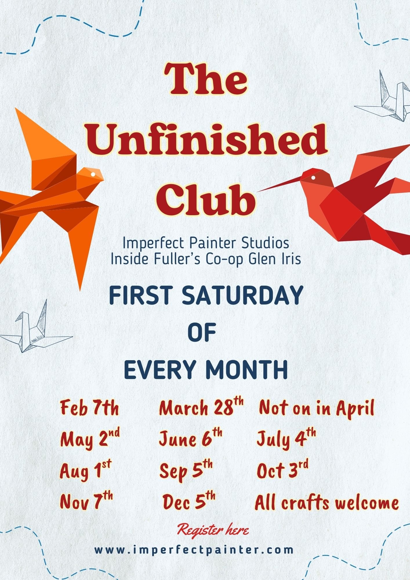 The Unfinished Club is a relaxed, low-pressure creative session where unfinished ideas are always welcome.Bring along projects you’ve started but never quite finished, experiment with something new, or simply enjoy making alongside others.